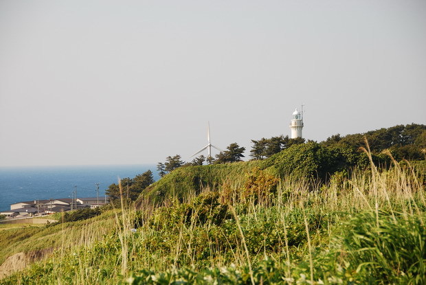 灯台の下にある。一帯は「夕日海岸」と名付けられている。 )