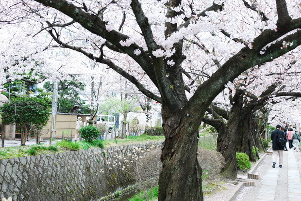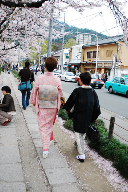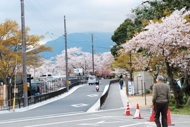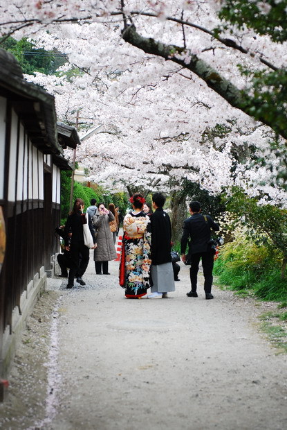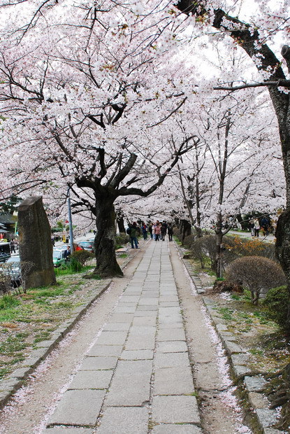 春天,從苔寺與華嚴寺回來的路上,看到櫻花盛開的道路,下車感受櫻花飄落的景致。