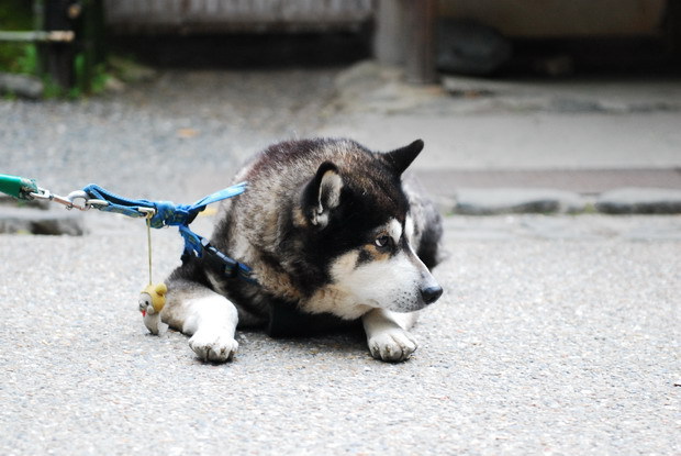 野宮神社前,趴在地上不肯走的賴皮小狗