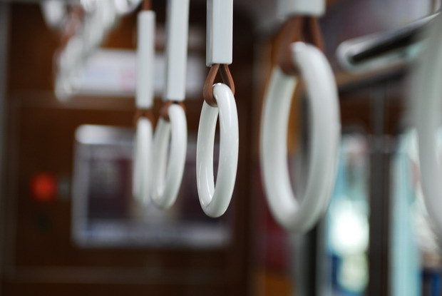 車廂內的人全部離開空蕩蕩的,只剩下吊環擺動。