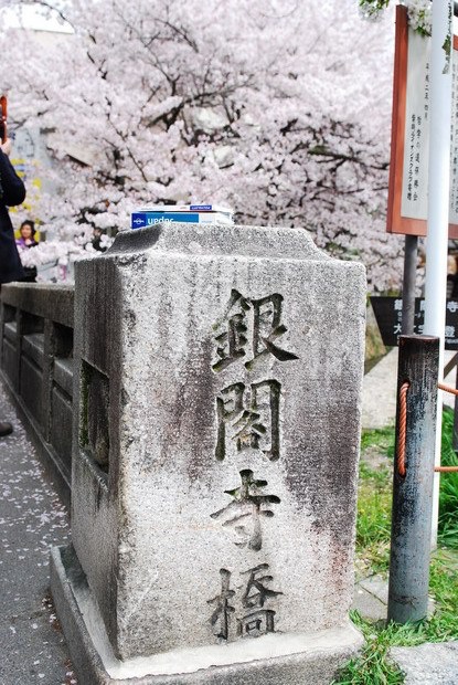 銀閣寺道前,圖片中的紅色公車,市巴士100號,從銀閣寺開往京都車站的途中,