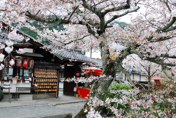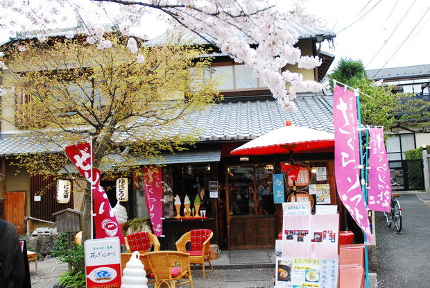 悠閒的茶屋前,總是開滿櫻花,也讓人想要坐下來,