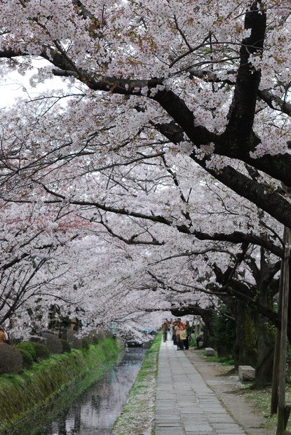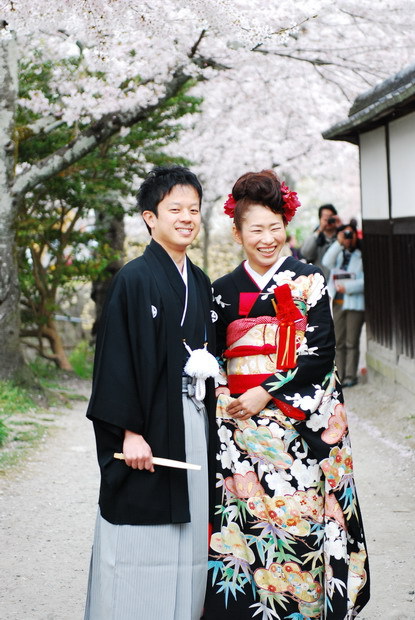 一對開心的戀人,在櫻花盛開的哲學之道,完成婚紗的拍攝,