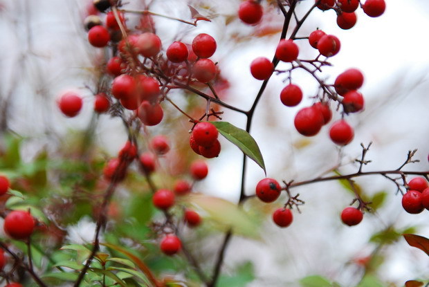 粉紅色的天空,看到紅豔的果子,會感到特別