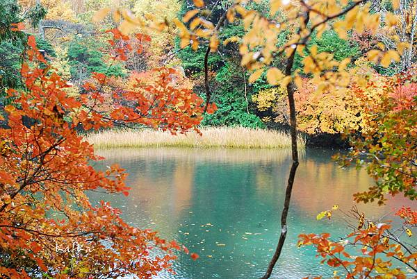 # 湯元湯ノ湖 -靠近湯元溫泉的湖水呈現藍色,不時還有熱氣裊裊升起