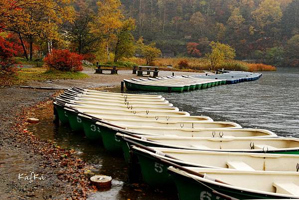 前往日光湯元的巴士停在日光站前,外面正下著大雨,可是亭內已經有不少人在排隊。山路漫長,也就坐著睡著了,直到抵達最終站湯元溫泉。此時約早上8點左右,巴士駛入停車棚,內有盥洗室,可稍做整理。外頭依然飄著雨,撐起傘穿著透明雨衣,沿途的店尚未開始營業,湖畔的小舟緊緊依偎繫著,望著湖岸的山景正被山嵐所包覆。空蕩蕩的大自然裡,鮮少人煙,沿著湯之湖慢行,可以看到公路旁的湖水升起裊裊的白煙,這應該是溫泉所造成的,無論是熱氣或是茵氣,早晨的湖畔總是帶著詩意。