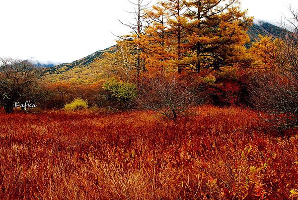 乘車到了赤沼入口,這一片應該就是戰場之原,有名的戰場之原的典故是山神間為了爭奪這塊豐饒的大地,赤城山神可化為大蜈蚣,而二荒山神幻化為蛇,但傳說中蛇總是打輸蜈蚣,後來二荒山神找了幫手猿丸,變成2打1贏了赤城山神。又有一說典故的背後,日光舉行射箭儀式總是朝著赤城山方向射去。