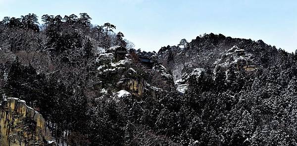[照片]下雪過後的山形,山邊一片白白的,照片右邊的小房子,就是山寺的納經堂。