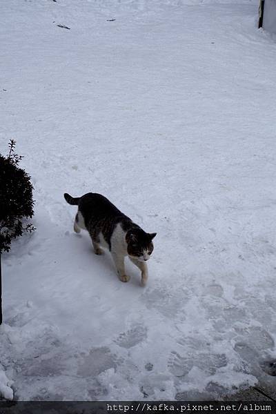[照片]雪地裡的貓,太太問說喵喵的腳不會冷嗎?