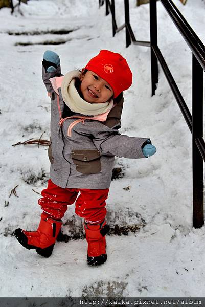 [照片]太太抱著小小女,我則是抱著大的女兒,雖然小女已經快要四歲,走路也走得很好,但是太滑了,根本沒辦法前進,所以我身上揹了大包、相機,另外一隻手抱著15公斤的女兒,感覺自己還要再壯一點,手臂要強壯阿!