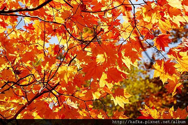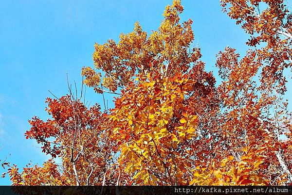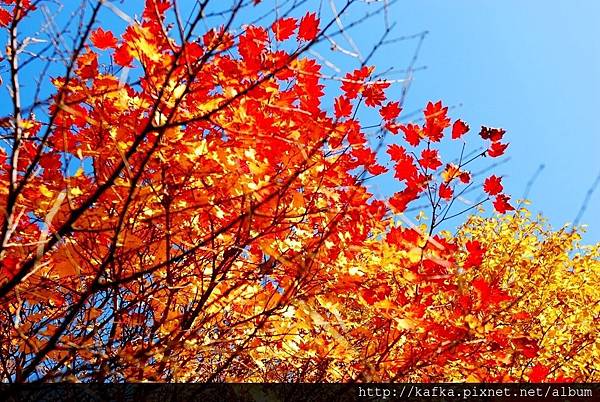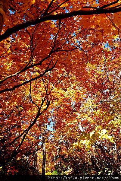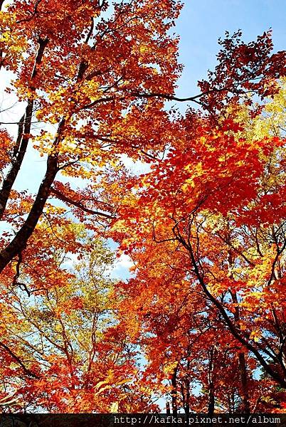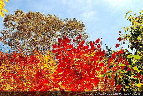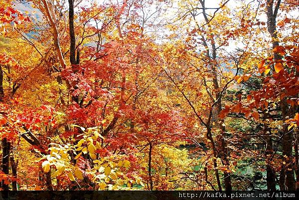 [照片] 大自然的紅葉,不像是寺廟都僅是楓葉,這裡可能是由好多種樹種組合而成,隨著種類的不同,葉型、顏色的組成都不一樣,最自然了。