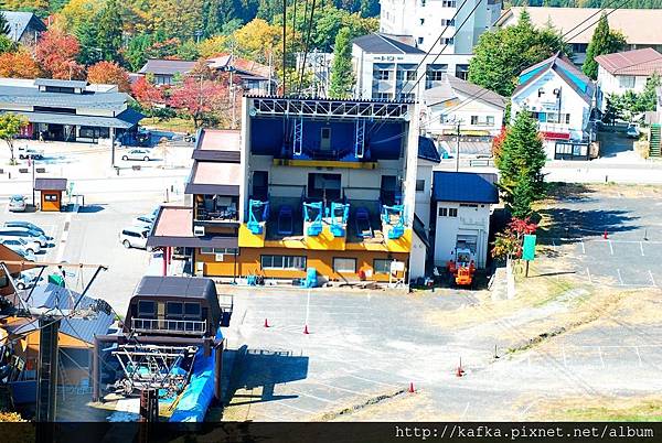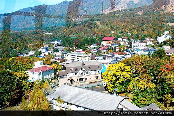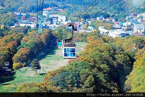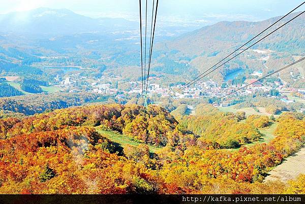 以上是題外話,其實到日本旅行,很多地方都有纜車,蔵王這地方也不例外,有時候在纜車上的視野可以很棒,像是在這一條線,還可以遠眺山形市區,另外從纜車往下看楓葉,就好像在看油畫一樣,真是享受。