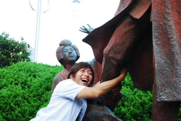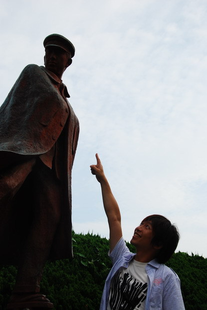 在熱海站附近有尾崎紅葉的筆塚,不過是在飯店前面,