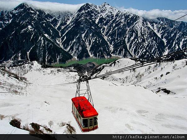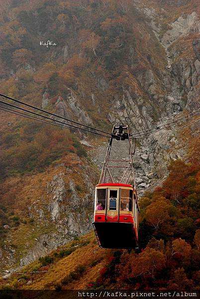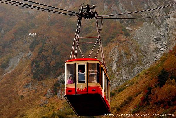 黑部立山的纜車,回頭看一下纜車雖然很小,