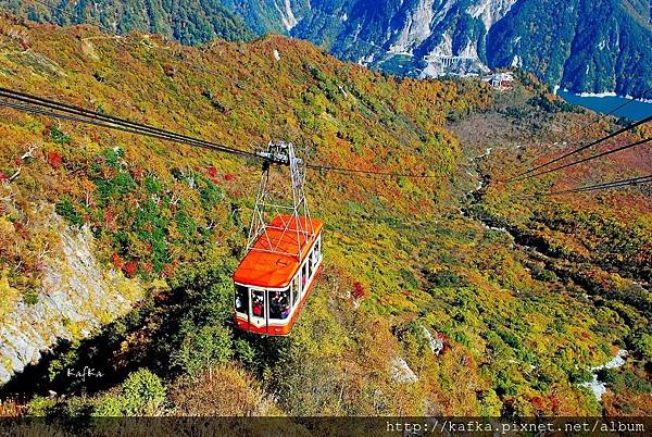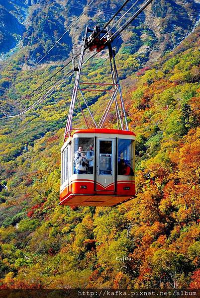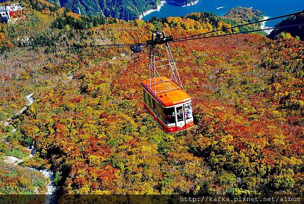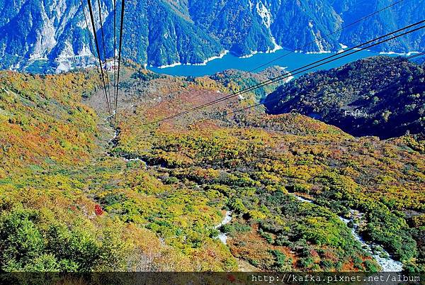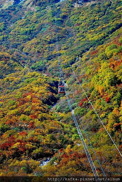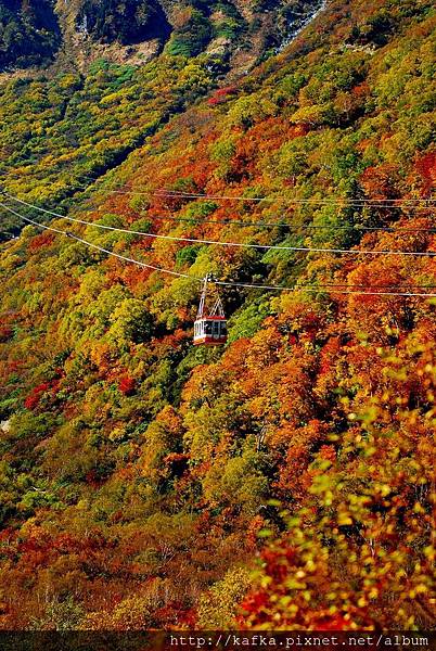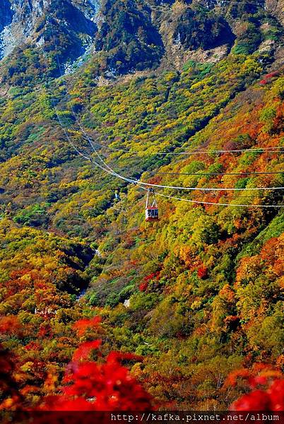 (照片說明)從大觀峰搭纜車往下到黑部平這段,真的是太美了,在纜車裡面往下看,盡是從綠油油褪色的樹林,黃澄澄的一片,而也很有層次感。