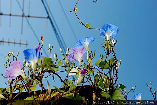 屋頂上的牽牛花,以前在台灣總是覺得牽牛花都長在沒人管的地方,