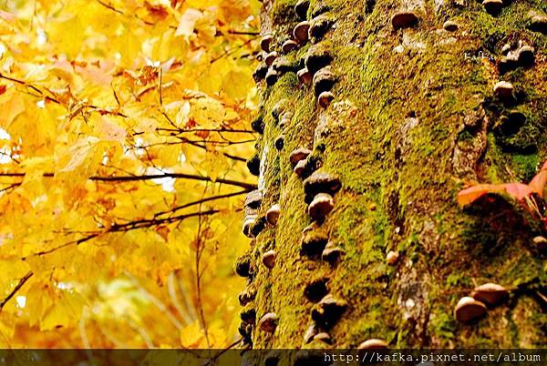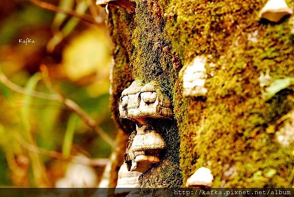 (照片說明)樹幹上有長了很多蕈類,就好像山壁上的房屋一樣!