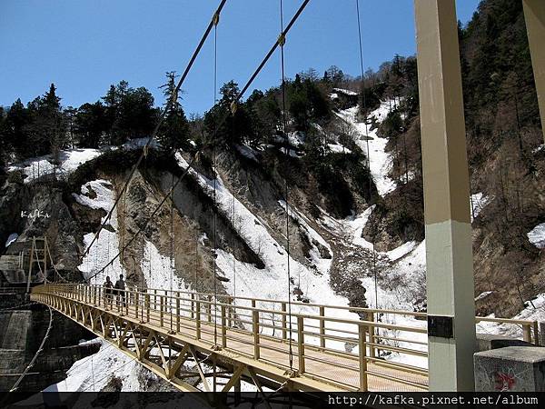 (照片說明)剛好我也有拍到春天的カンパ谷の吊り橋