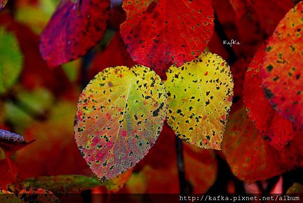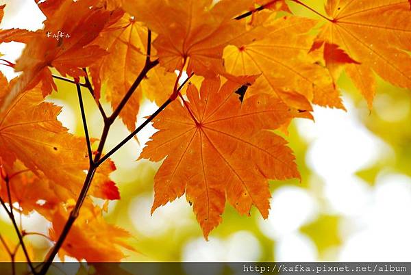 (照片說明)楓葉正在變色,所以還可以看到綠色的部分,表示葉子上還有葉綠素,可以行光合作用!