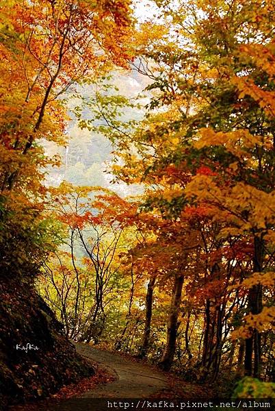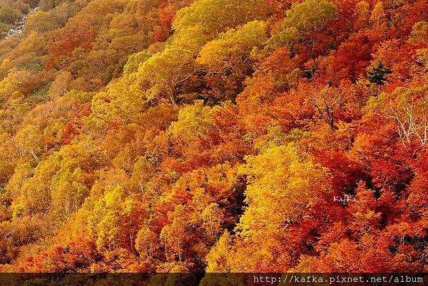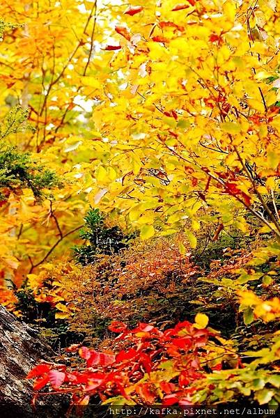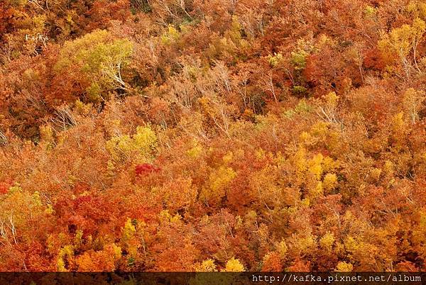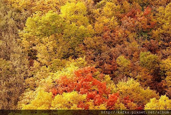 (照片說明)山裡的紅葉或黃葉,並不像是京都的紅葉,都是以楓葉為主,只要是落葉林,都有可能變色,雖然森林是沒有被整理的,但反而更為自然。