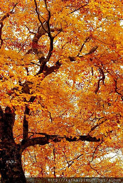 (照片說明)一整片橘黃色,好美喔!其實春天是一整片的新綠夏天是一整個綠,應該也是很賞心悅目,看到這一張照片,讓我想起若干年前到德國的海德堡,也是看到茂密的樹蔭,無論是什麼顏色,都覺得很舒服,人還是要親近大自然。