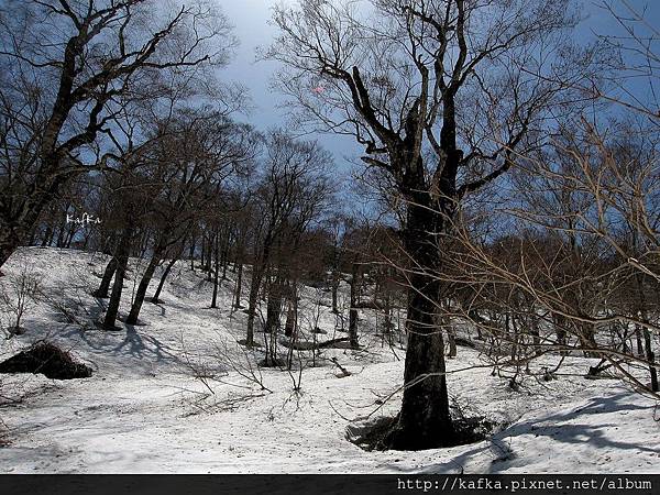 (照片說明)春天的原始林,很喜歡下雪的景色,尤其是大地被白雪覆蓋的感覺,樹木立於雪地之上,沒有任何的樹葉,只有樹枝,是蕭瑟之情,藍天陽光白雪,是我喜歡的景色。