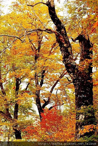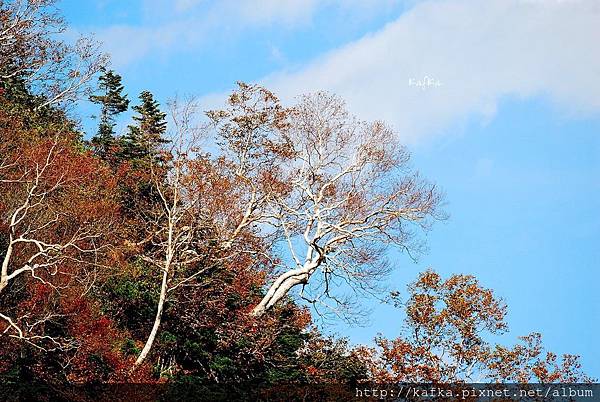 (照片說明)秋天的林相,真的好舒服喔~這種感覺讓我想到我冬天去能高越嶺的景色。