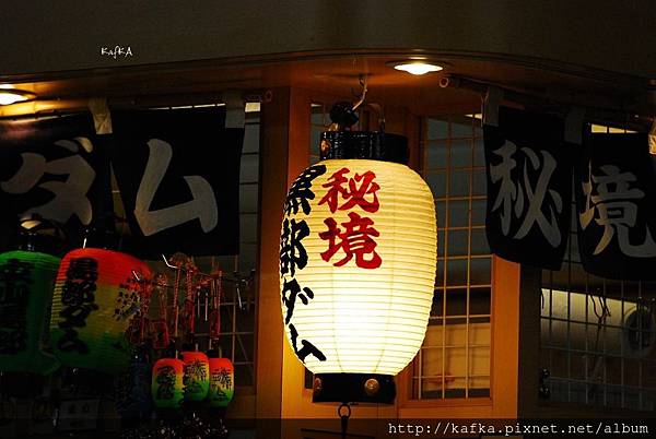 (照片說明)黑部水庫的秘境,印象中是賣拉麵的,不過好像快關門了,所以燈光也很暗,點了燈籠,更增添神秘感。