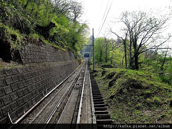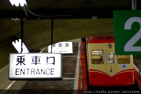 可能是日本的週間,搭乘巴士到扇澤的人並不多,所以座位還蠻空的,過了大町溫泉鄉,就是一路蜿蜒的山路,還真的會暈車,到了扇澤站之後,就換乘軌道列車,我想應該算是cable car的一種,舊金山市區的路面電車,就是cable car,不過纜線埋在街道下,所以就看不到了。