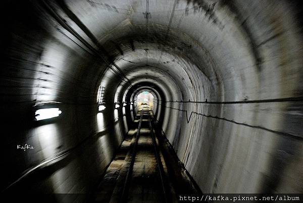 (照片說明)要到立山的山頂,從黑部湖會進入到類似洞穴的車站,也算是搭乘纜車(cable car),穿過山洞,就到黑部平了,而且這個隧道在纜車移動的時候,會產生迷幻的感覺,很奇妙。