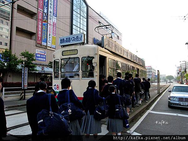(照片說明)吃完早餐後,要去電鐵富山站了,路面電車好多學生要上學喔!