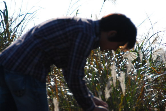 冬天的陽明山,佈滿芒草,暖陽的照射下,