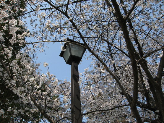 圖:櫻花圍著路燈