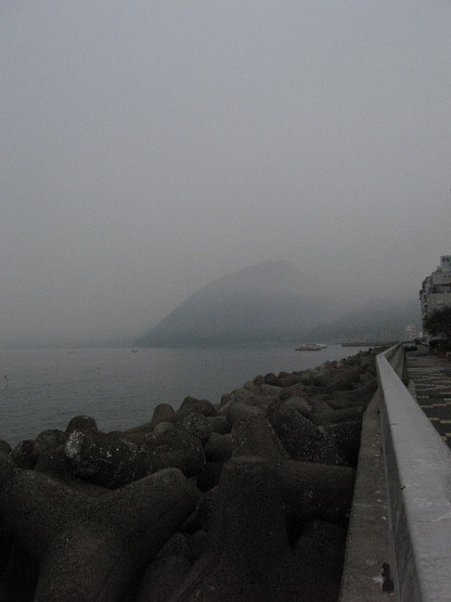 下午開始下雨,望著海邊的山,都是霧濛濛的