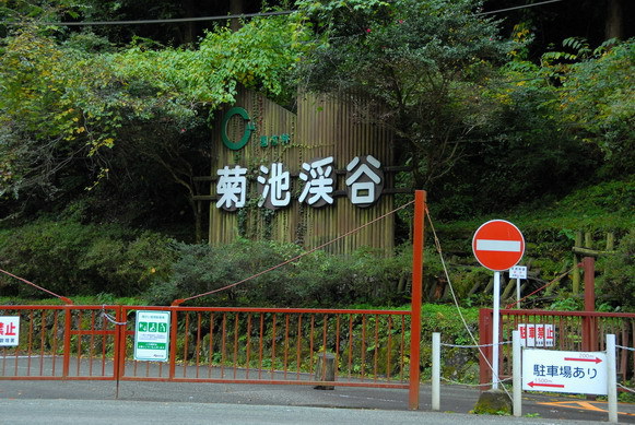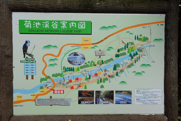 我們到了菊池溪谷,路邊就可以看到大大的牌子,寫著菊池溪谷