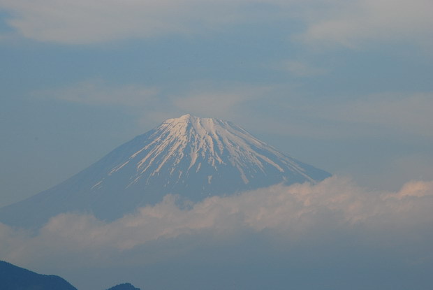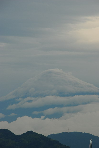 不一會兒,又有一片雲朵飄過,被高聳的富士山攔截下來。