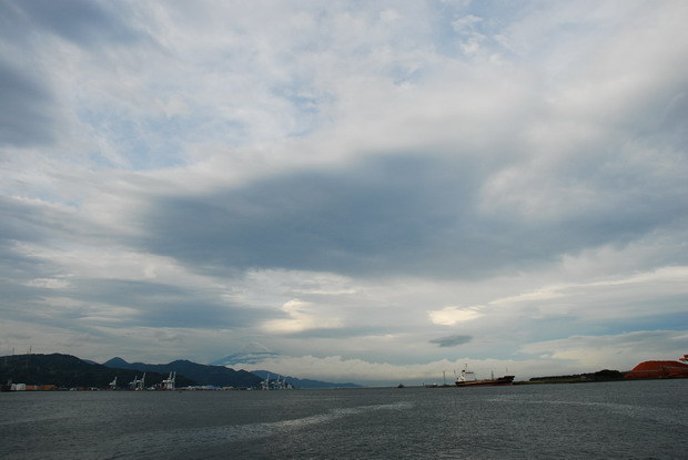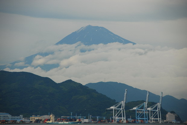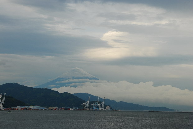 最後補上一張清水港的照片,富士山在靠左邊偏中下之處,有雲之白頭