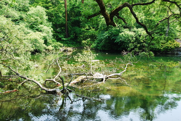 3つの色の水を持つ美しいみどろ(深泥)沼。この色の違いは微妙な水質の