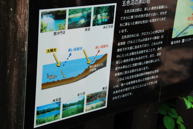 赤沼と呼ばれます。 五色沼の水の色は、水中の微粒子の大きさによります。