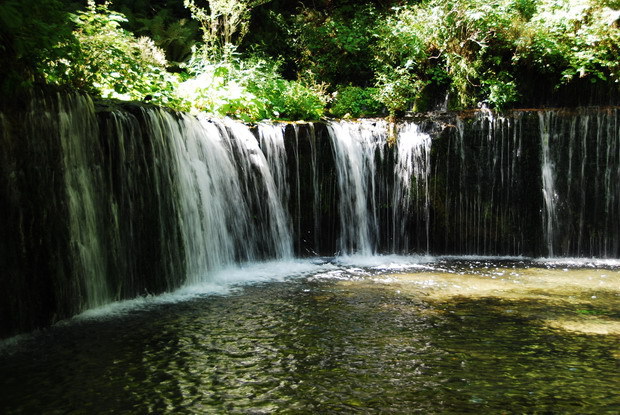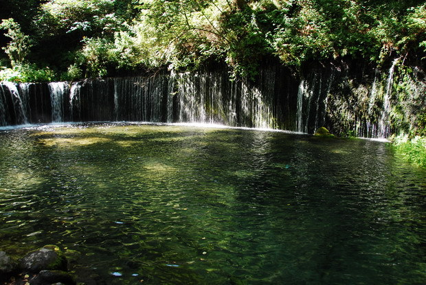 晴雨に左右されることなく常に幾条もの白糸のように清水が流れ