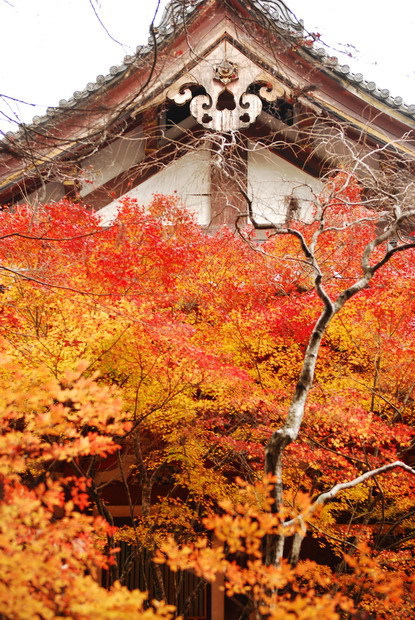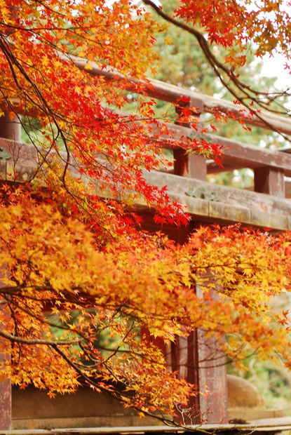 這是寺院內的鐘樓,可見楓葉狀況是"落葉完了"