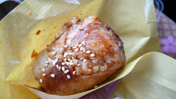 肉片包裹著飯,把他煎熟,肉脂的香味,