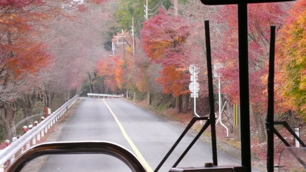 其實坐在公車上也是一種享受,因為迎接公車的是兩旁紅透的楓樹林。