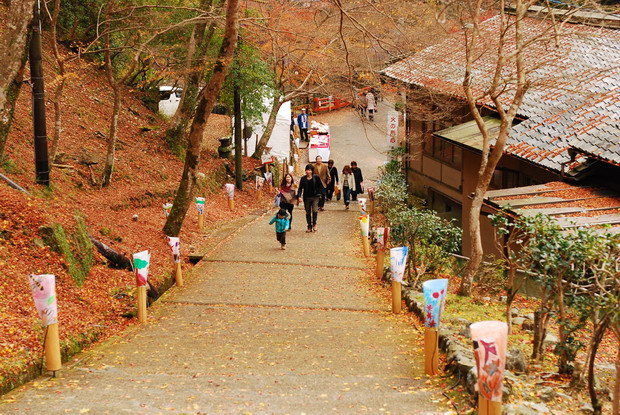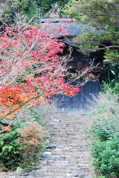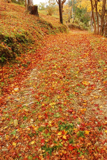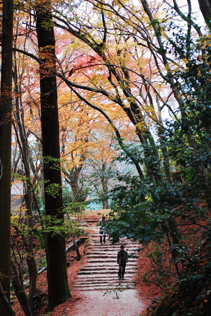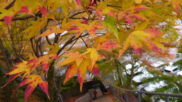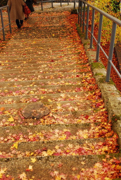 雖然楓葉不是那麼的密集,但伴隨著路上的石階
