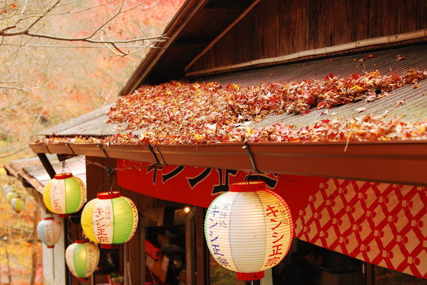 山路旁的小店,掛著燈籠,屋簷上是剛剛落下的楓葉,而這些楓葉可以做什麼呢?