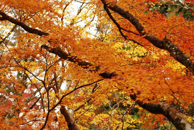 但是還有殘留尚未掉落的黃葉與紅葉,搭配著枯枝,
