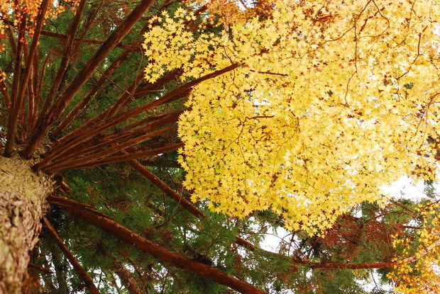 即便沒有看到滿山紅通通的楓葉,換各角度想,遇到美麗的杉樹,