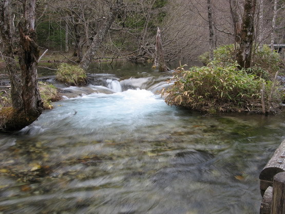 從河童橋經過落葉松、棠梨等樹林到達明神池, 徒步約50分鐘;從明神分岔口, 穿越樹林和河畔到德澤大約要1小時. 中途還有水鳥、鶲類、鴉類的觀鳥點