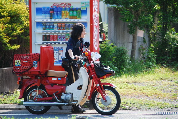 還蠻可愛的送貨員,似乎自動車有些許問題,使得他要在大熱天牽著車