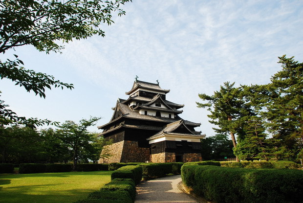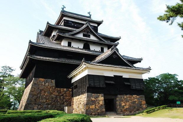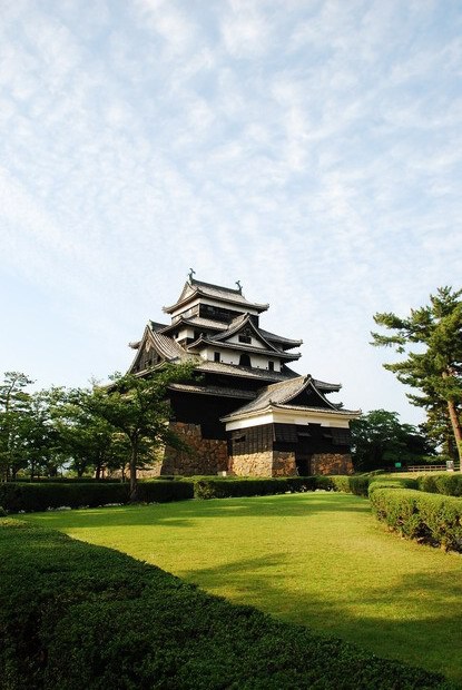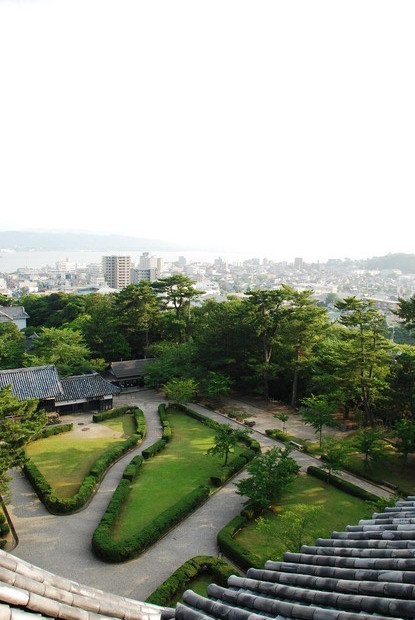 翠綠草皮上的松江城,看起來也蠻漂亮的
